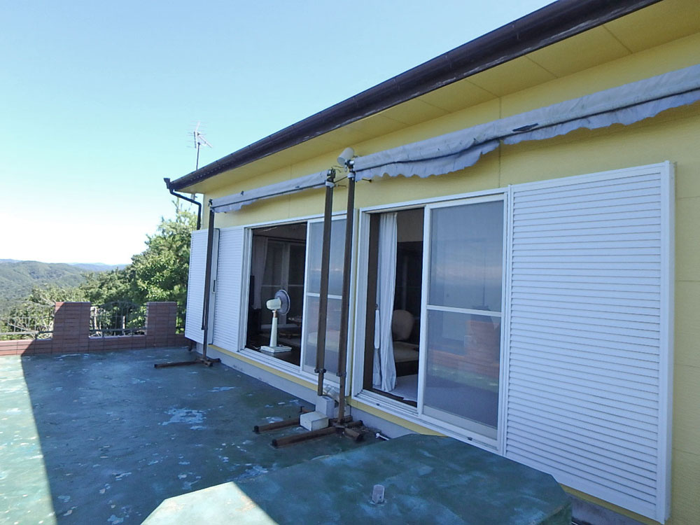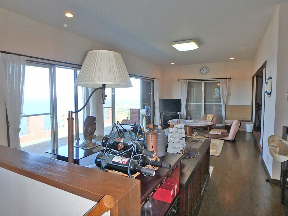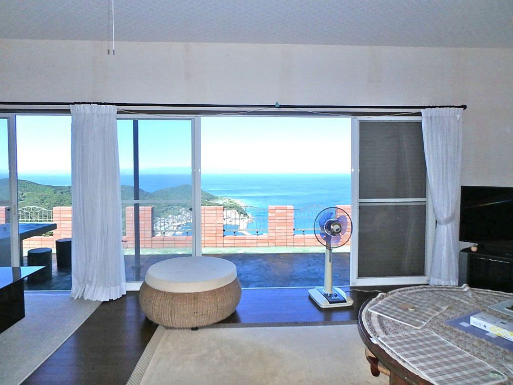 夏の海水浴やクエ鍋で知られる日高町の産湯海岸の西側丘陵地にある別荘地内、最上部に位置する物件です。建物は2LDKに広いバルコニーのある鉄筋コンクリート・木造の2階建て。1階は居間と浴室・トイレ、2階にLDKと和室があり西側に開けたリビング・バルコニー~からは漁港や紀伊水道を眼下に四国や淡路島まで遠望できる見晴らし抜群の別荘です。また、物件敷地内最上部には敷地内展望所もあり、日ノ岬を眼下に太平洋までも一望できます。(間取図は現況と相違の場合、現況優先とします)
