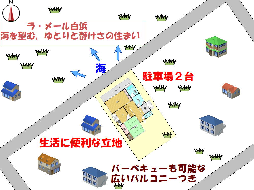 江津良海水浴場まで徒歩6分、閑静な住宅街に佇む好立地。1階・2階ともに海側の窓からは美しい海を一望でき、日常の中で贅沢な景色をお楽しみいただけます。駐車場は2台分を確保。2階のベランダや裏庭ではバーベキューも可能で、ご家族やご友人との時間をゆったりと過ごせます。室内は、掘りごたつのあるリビングダイニングを中心に、くつろぎの空間を演出。キッチンは独立型で使い勝手も良く、生活感を抑えたすっきりとした空間を保てます。さらに、落ち着いて過ごせる和室も備えた3SLDKのゆとりある間取りです。白良浜までは車でわずか4分。定住・別荘・民泊など多彩な用途に適しており、ライフスタイルに合わせた活用が可能です。リゾート感と利便性を兼ね備えた、魅力あふれる住まいです。