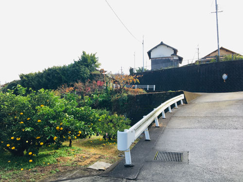 柑橘と紅葉が美しい現場までの上り坂。