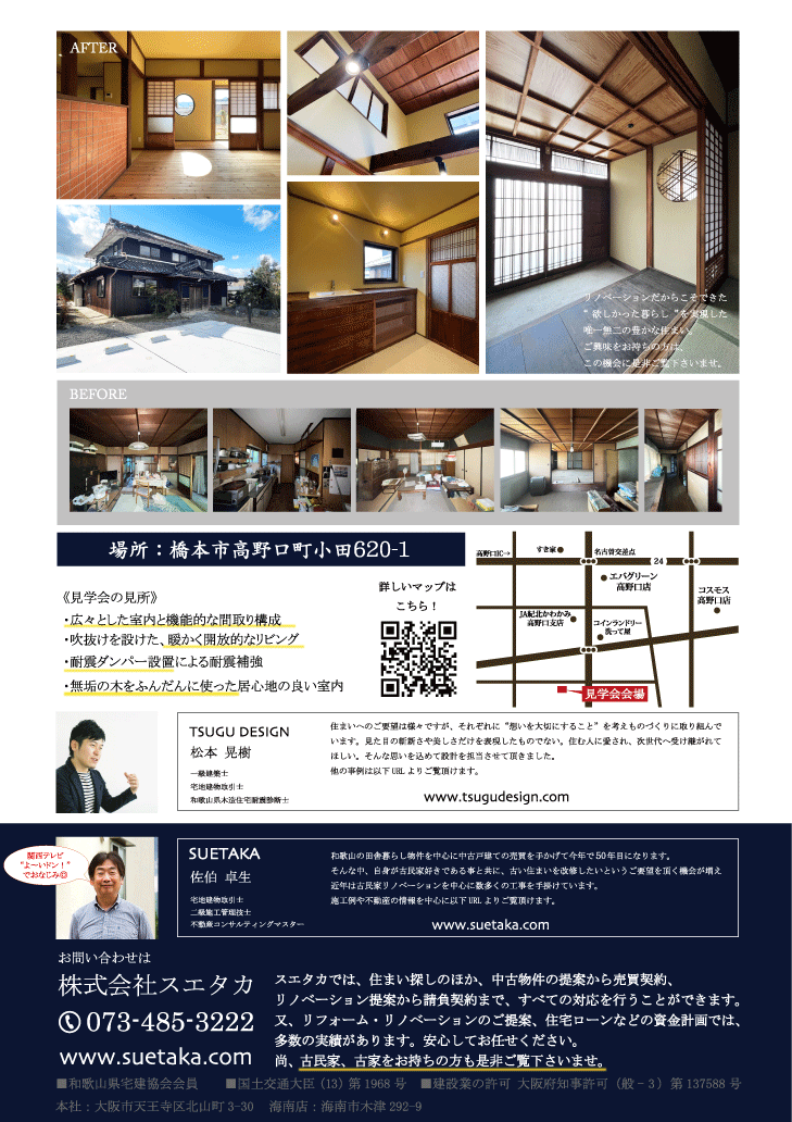 橋本市高野口町 古民家リノベーション完成見学会