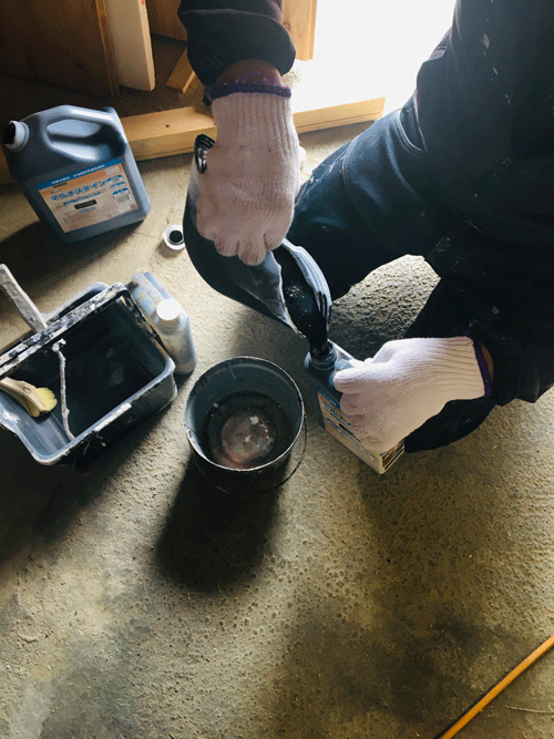 塗料の下準備中。