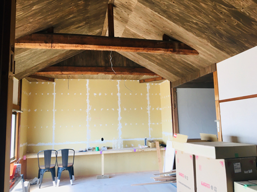前回の大奮闘の左官作業の壁面も出来上がっていました。