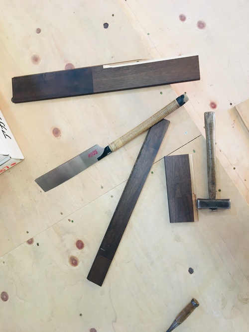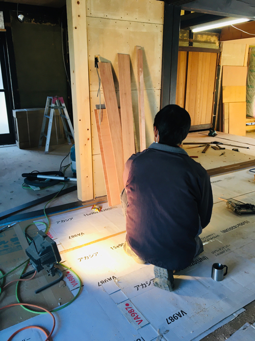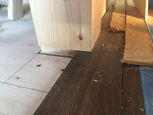前回作業していた、柱の下の床材がすっかり納まっていました。