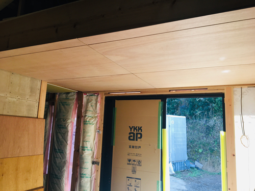 リビング西側もボードが張り終えておりました。