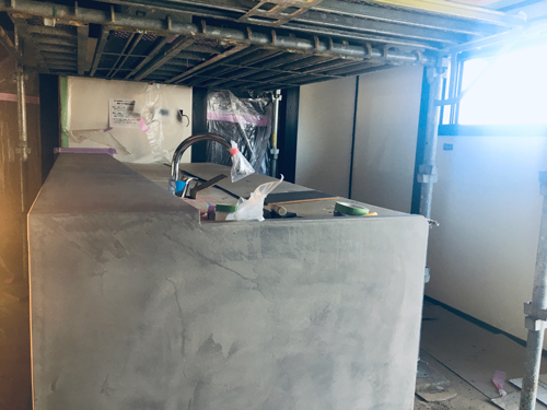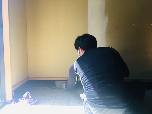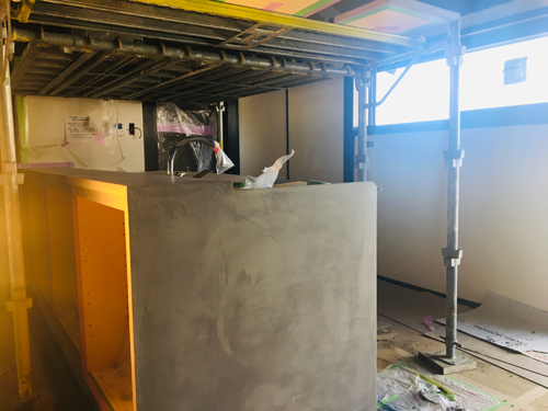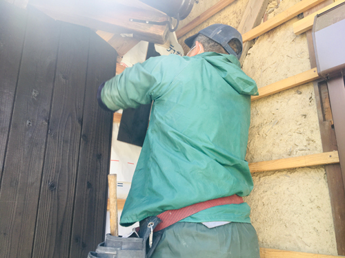 もうすぐ完成間近の冬野現場、今日は左官屋さんも入っています。