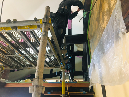玄関ホールにもクロスが張られてゆきます。