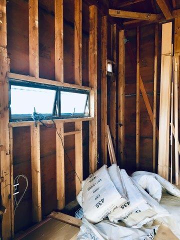 壁面には今後グラスウールによる断熱工事を予定。