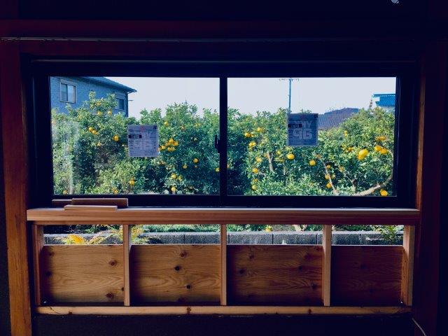 窓から見える柑橘が、花の少ないこの時期に色鮮やか。