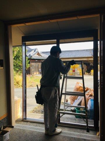 今日は玄関サッシの取付工事