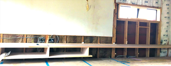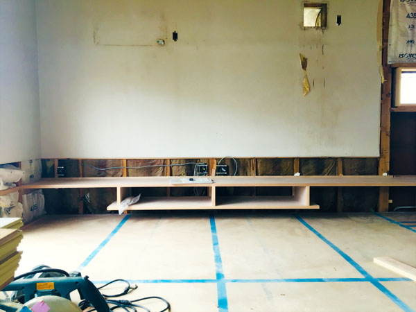今日は造り付けのテレビボードが入っていました。