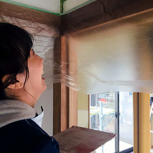 引き続き塗り壁奮闘中の奥さん(過去の記事)