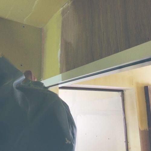 今日はクロス張替の下地作業中