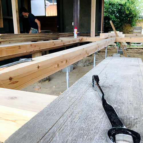 月日を経て独特の色味や質感を持つようになった木を生かすことで、