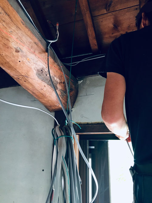 配線を通す部分も、あっと言う間に作ってしまいます。