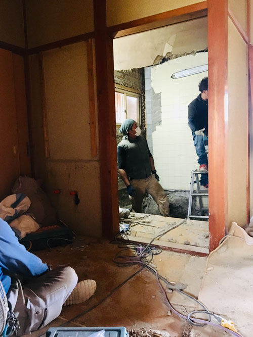 引き続き解体中、リノベーションでは壁や床下の中など