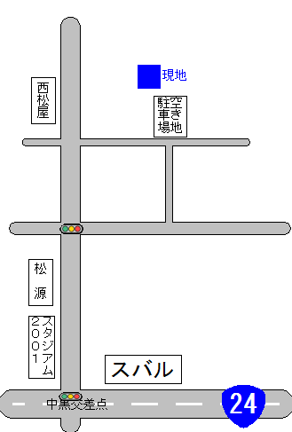 (車でお越しの方は、地図に出ている現地横の空き地にお越し下さいませ)