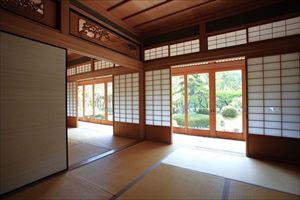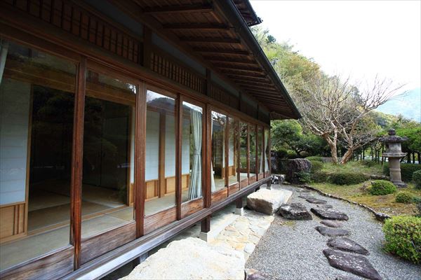 2階建ての母屋と美しい庭。