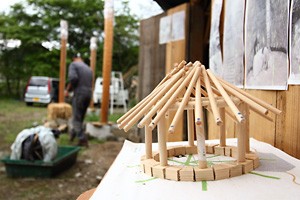できるだけ廃材などを再利用し、ローコストで建築しようということで、屋根組みも竹を利用してみようと研究・準備中だそうです。