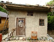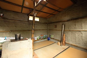 まずはストローベイルハウスを造る練習として、材料がよく似た古畳で「TATAMI HOUSE」を作りました。解体した古民家の厚い畳の廃材利用で、畳を壁材に土を塗り固めた小さな家です。