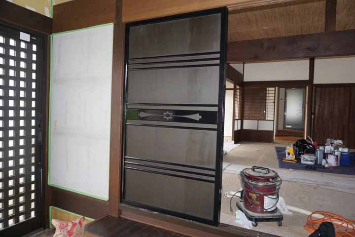 この建具も以前のものを修理し、綺麗にして再利用しています。