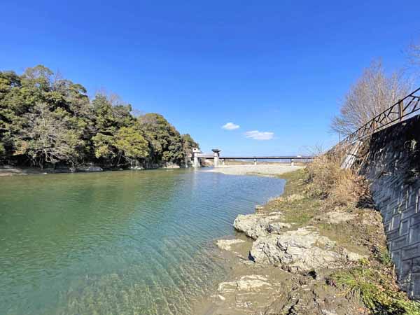 ↑の写真の、橋がある辺りは川の水深が浅く、河原が広くなっています