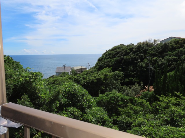白浜黒潮台、入り口近くにある戸建てで、1階ベランダと2階広い和室から海が見えます。
