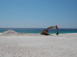 その横ではどんどん砂山が重機でならされていって、寂しくもあり、これからしばらく賑わうであろう海水浴シーズンの熱さを感じ取れた場所でした。