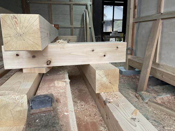 梁も立派で強固な造りの印象です。長年使われてきた太い柱や梁を取り入れることで、