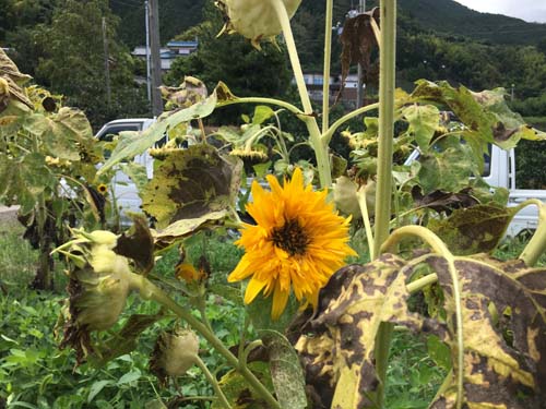 咲き終えた向日葵、その中にもまだ一輪残っていました🌻