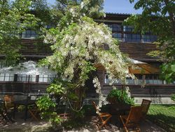 駐車場からレストランへ向かう途中に立派な藤の木を発見。しかも白色。清楚で高貴な雰囲気が春の穏やかな空気と相まって、優しい場所を提供してくれます。