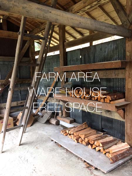 農作業にも最適な倉庫。湧き水も近いので収穫作業にもいい場所です。