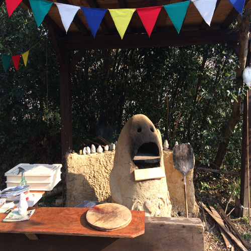 PIZZA米市さん。埴輪型のピザドーム。 焼き終わってました(/ω\)